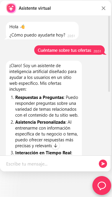 Automatiza la atención al cliente con un chat inteligente que responde en tiempo real, mejora la experiencia de tus usuarios y ahorra recursos operativos. Ideal para negocios y empresas del Perú que buscan digitalizar su servicio.